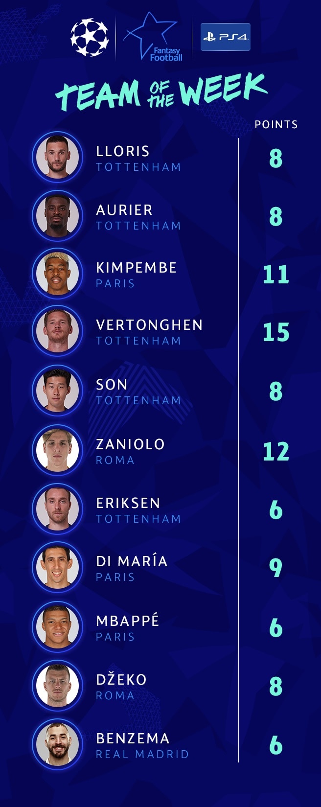 The team is made up of the highest-scoring players this week in the official UEFA Champions League Fantasy game, presented by PlayStation. The player with the highest overall score was selected when two or more were tied on points. Let us know your thoughts @ChampionsLeague using #UCL.